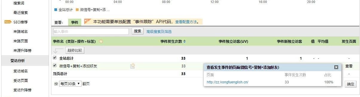 果然,我們看到了監控的效果。需要注意的是,第一次添加時間代碼,CNZZ有一定的延遲,至少是1個小時。