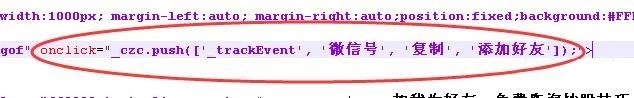 這個是事件轉化的代碼,而我們埋點的時候,還要加上js的函數,這里使用onclick函數來設置:onclick="_czc.push(['_trackEvent','微信','復制','添加好友']);"