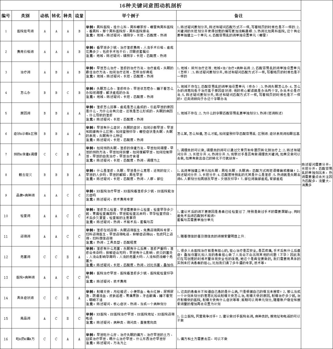 二、16種關鍵詞意圖動機剖析及重要程度順序