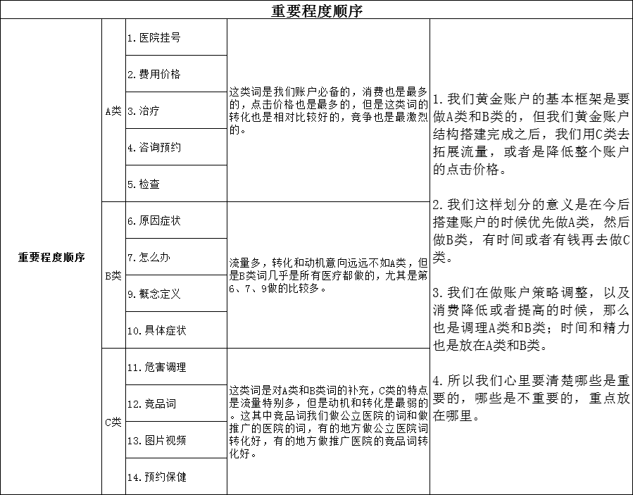在醫療競價推廣中,訪客通常都會搜索三大類關鍵詞——術前、術中和術后詞。針對這三類詞,也需要有針對性的去推。