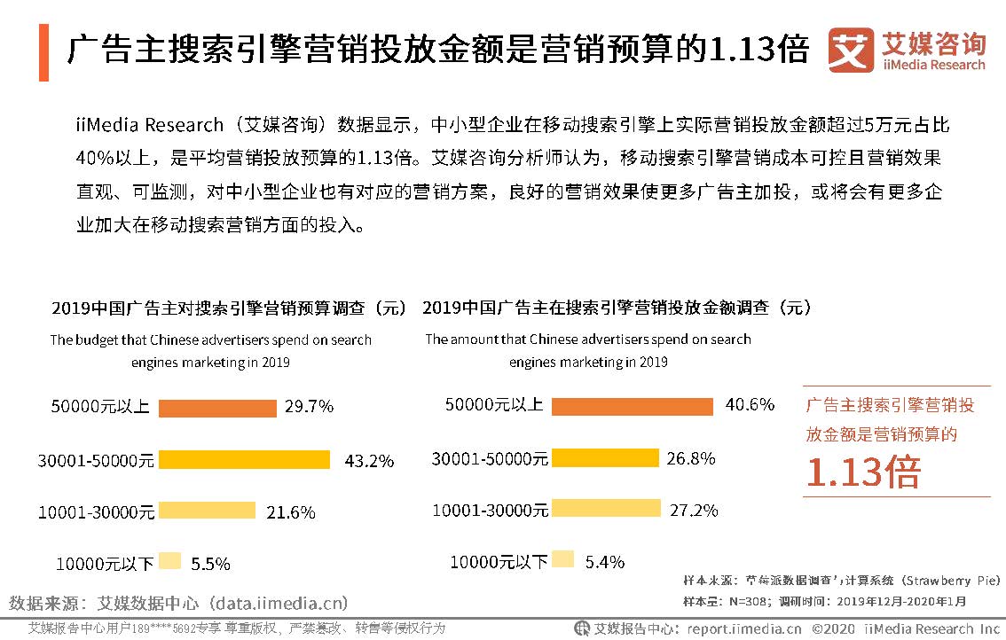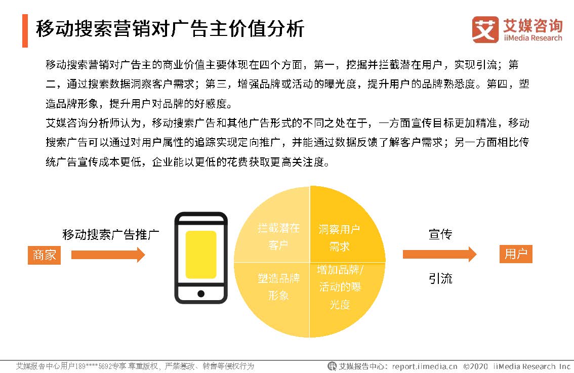 九成廣告主具有移動搜索營銷意愿,精準用戶需求搜索營銷價值高。搜索營銷具有成本低、傳播速度快等特點,且能根據用戶搜索目的精準投放至用戶端,具有高營銷價值,收到廣告主青睞,接近九成的受訪廣告主表示愿意在搜索引擎投放廣告。