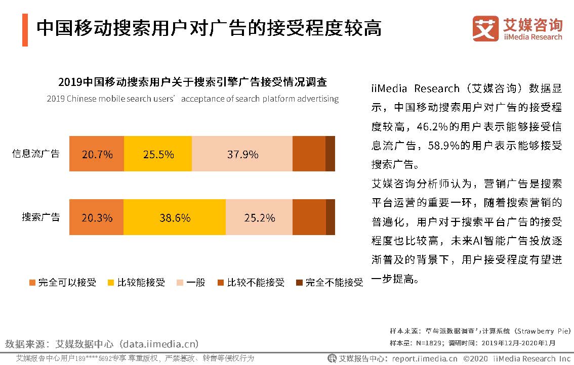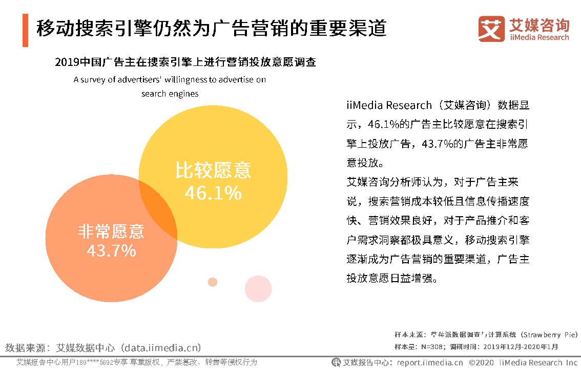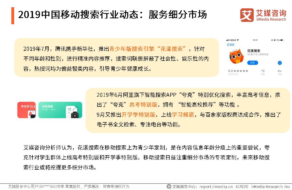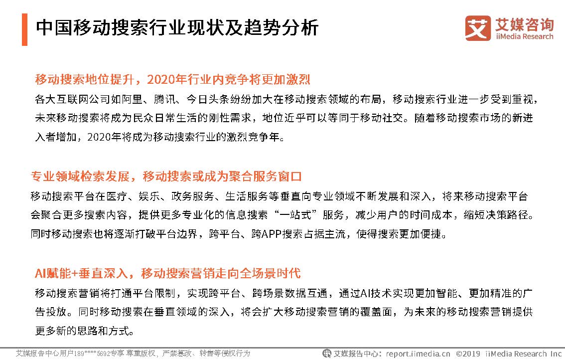 移動搜索用戶達7.05億人,2020將迎激烈競爭年。2019年第四季度中國移動搜索用戶已達7.05億人,規模保持穩定增長態勢。與此同時,各大互聯網巨頭平臺更加注重在搜索行業的布局,而神馬搜索、搜狗搜索等平臺也繼續加強發展步伐,面對龐大的市場,2020年移動搜索將迎來激烈競爭年。